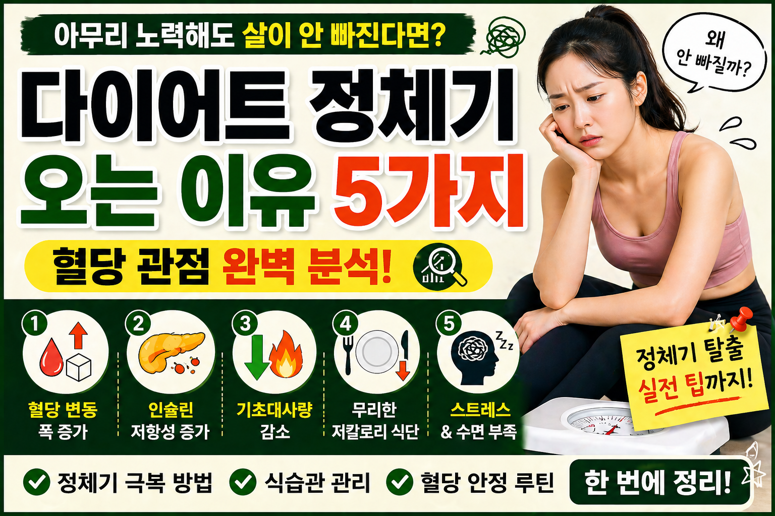 이 글에서는 다이어트 정체기가 오는 이유를 단순한 이론이 아닌, 혈당 관점에서 5가지 핵심 원인으로 정리하고, 실제로 정체기를 벗어날 수 있는 방법까지 함께 알려드리겠습니다.