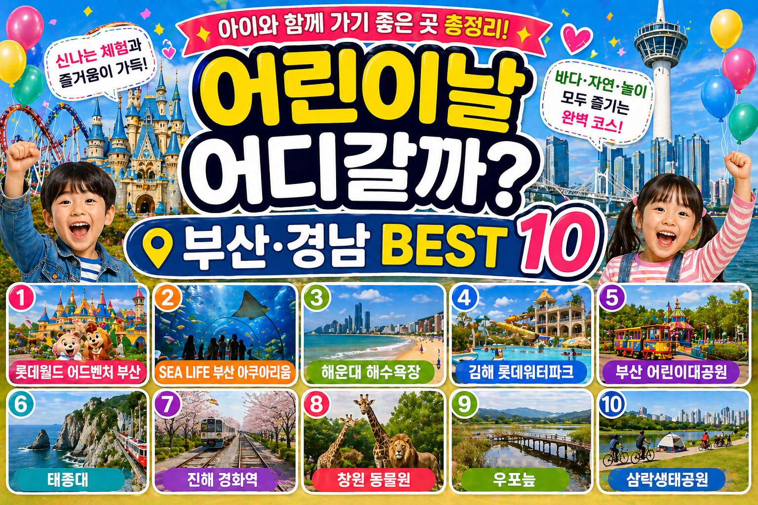 어린이날이 다가오면 부모님들의 고민은 늘 같습니다. “이번에는 어디를 가야 아이가 정말 좋아할까?”라는 질문이죠. 특히 부산·경남 지역은 바다, 놀이공원, 자연, 체험형 공간까지 다양한 선택지가 있어 오히려 결정이 더 어려운 경우가 많습니다.